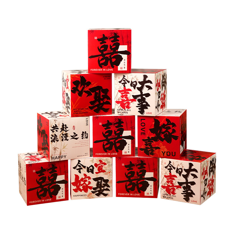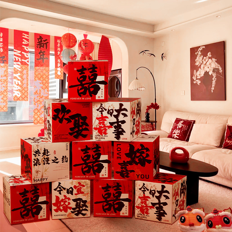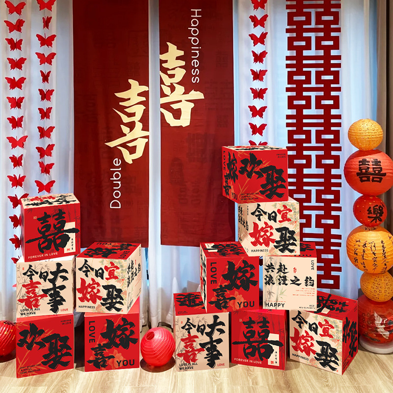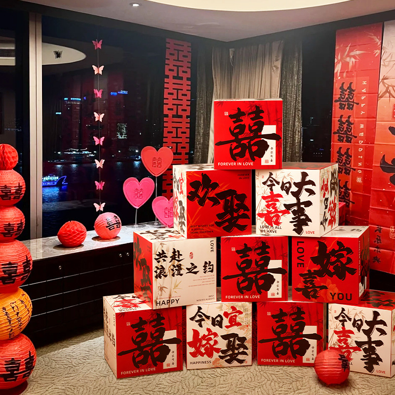 婚房布置堆堆盒子婚礼落地摆件女方酒店卧室装饰喜字立体结婚用品
