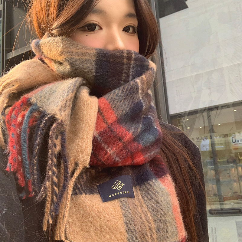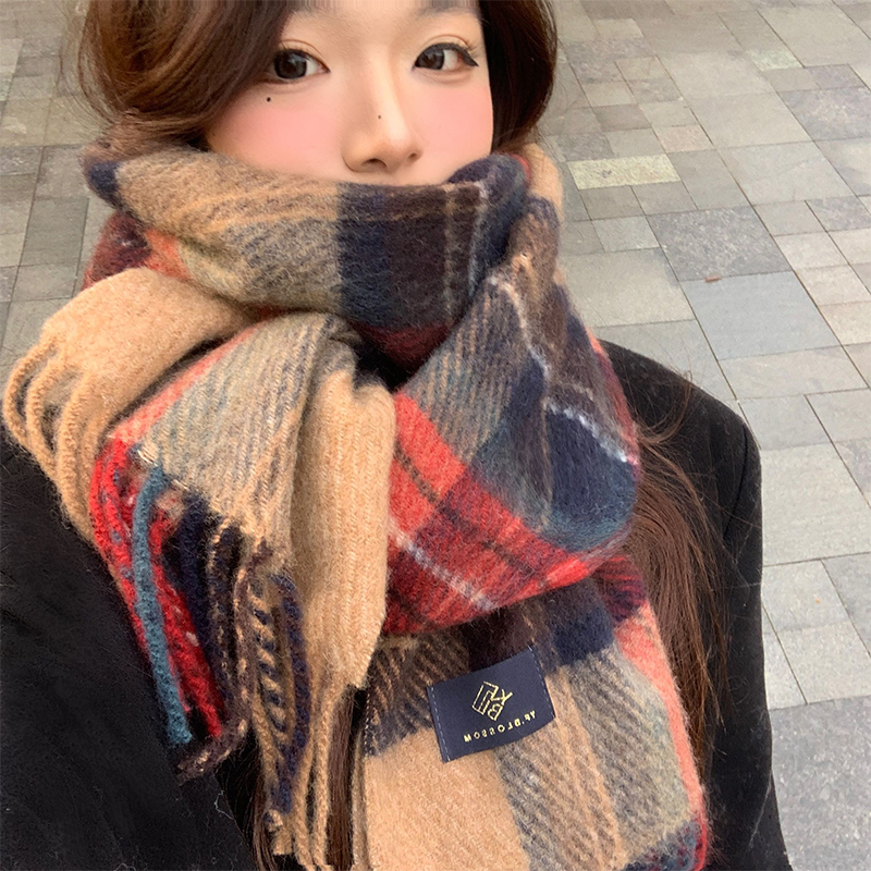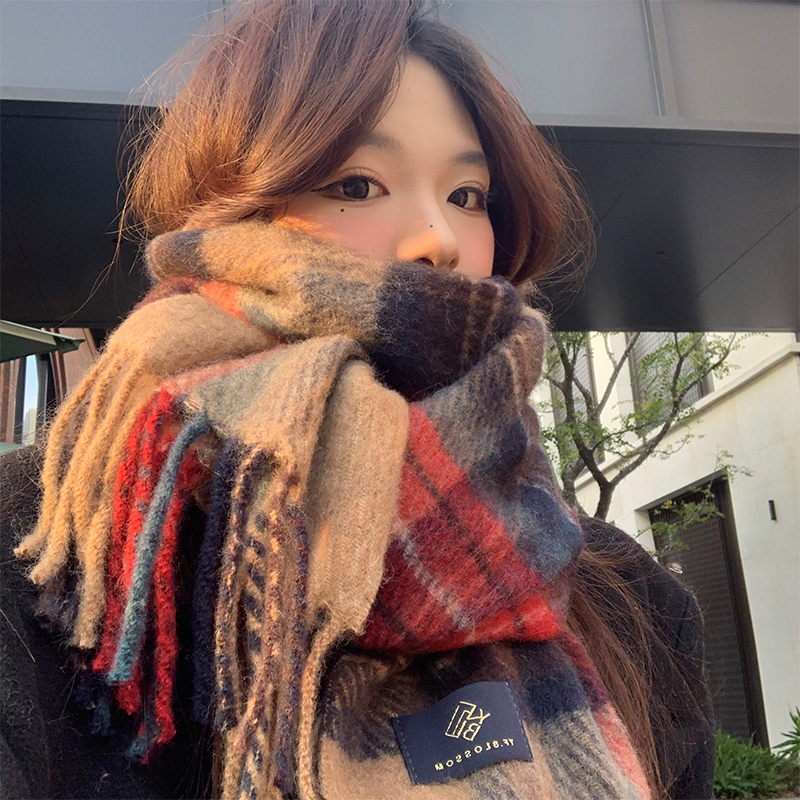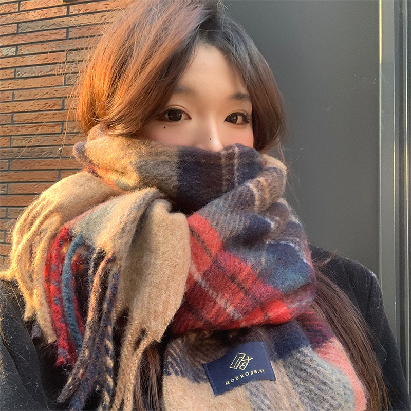 2024年新款含羊绒针织格子围巾女秋冬高级感加厚防寒保暖披肩围脖