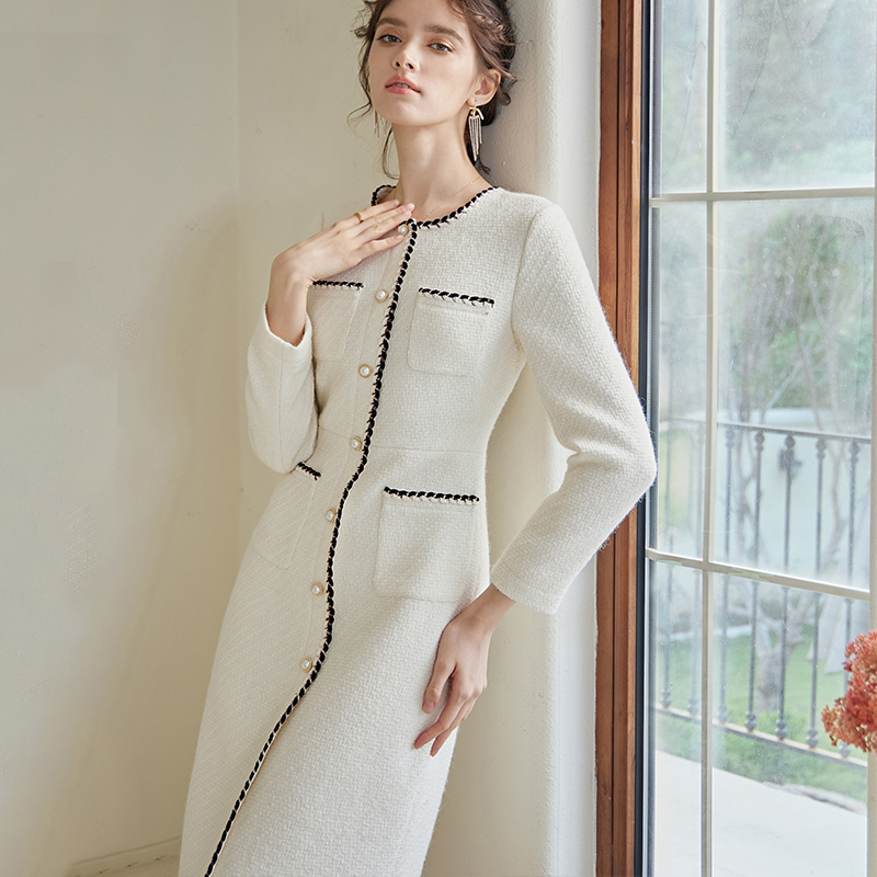 罗衣气质小香风粗花呢连衣裙女2025秋季新款气质修身中长裙07667