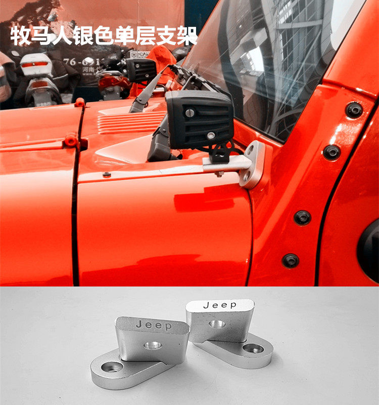 越野车改装射灯底座北京JEEP牧马人BJ40单层银色支架猛禽雾灯支架