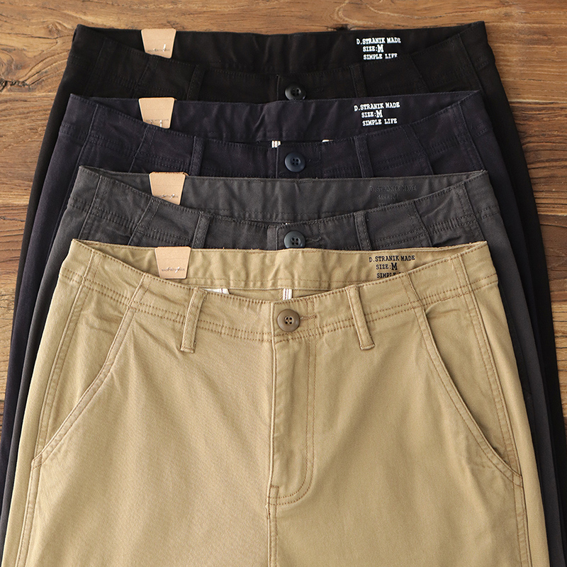阿美咔叽Chino休闲裤美式复古微弹斜纹卡其春秋锥形小直筒长裤男