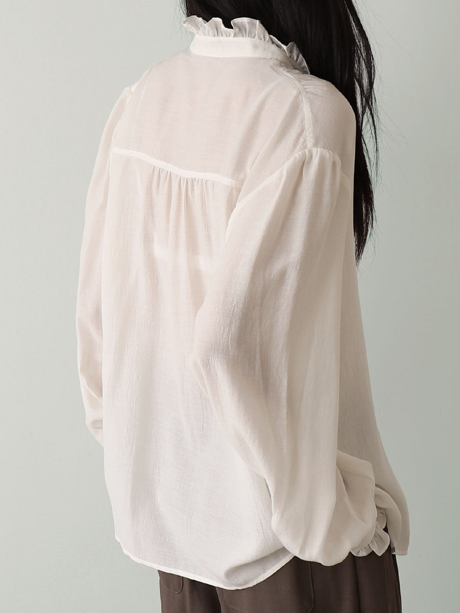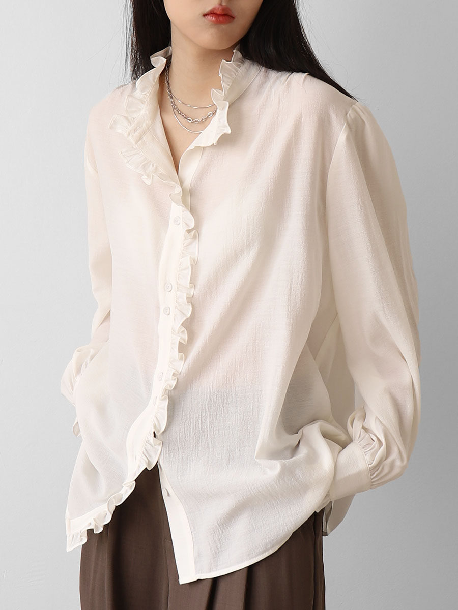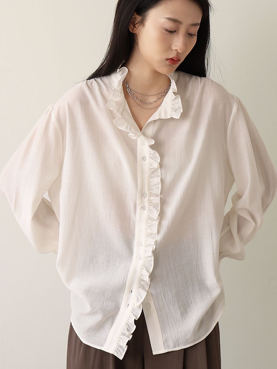 CHICCLO 2024春装新韩版休闲宽松法式立领花边叠穿长袖衬衫上衣女