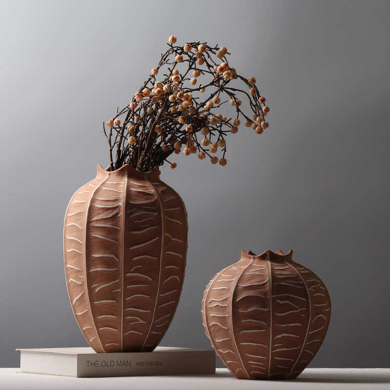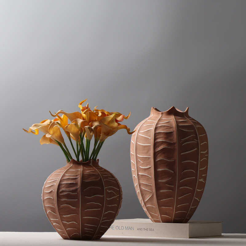现代简约陶瓷花瓶复古拼色杨桃装饰品民宿造景插干花花器创意摆件
