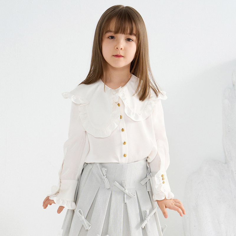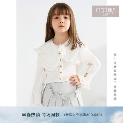 erdosKIDS鄂尔多斯童装 女童公主可爱娃娃领衬衫