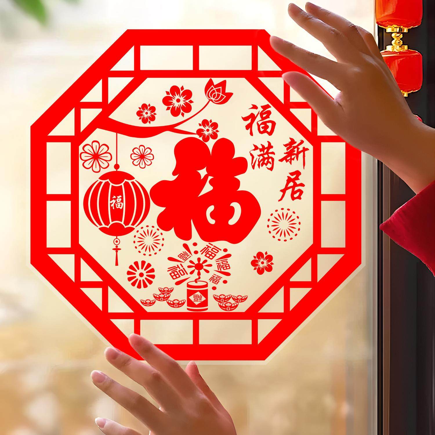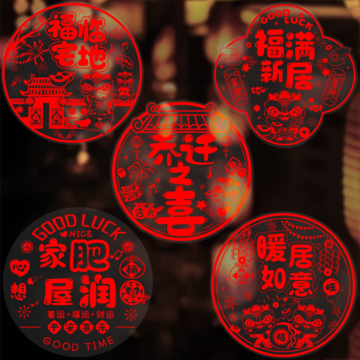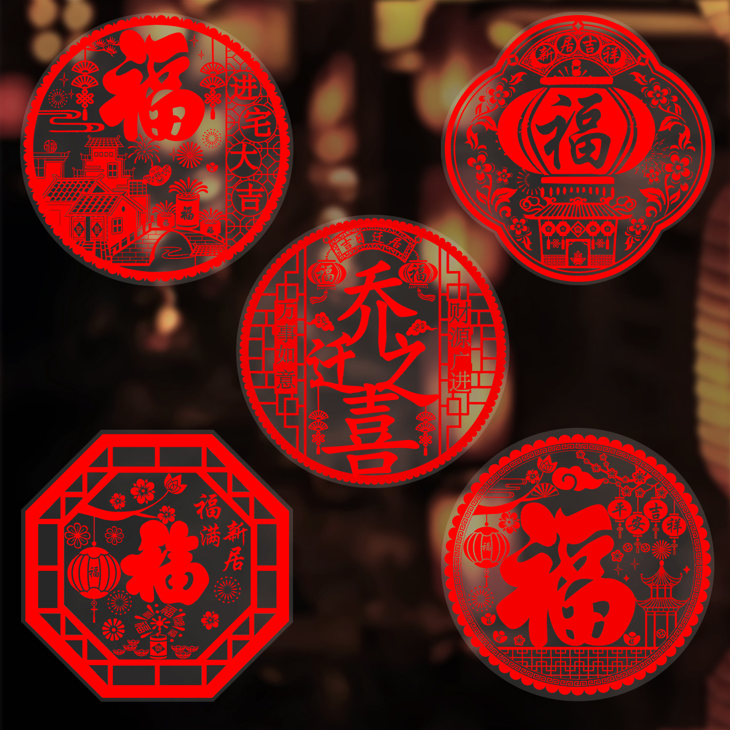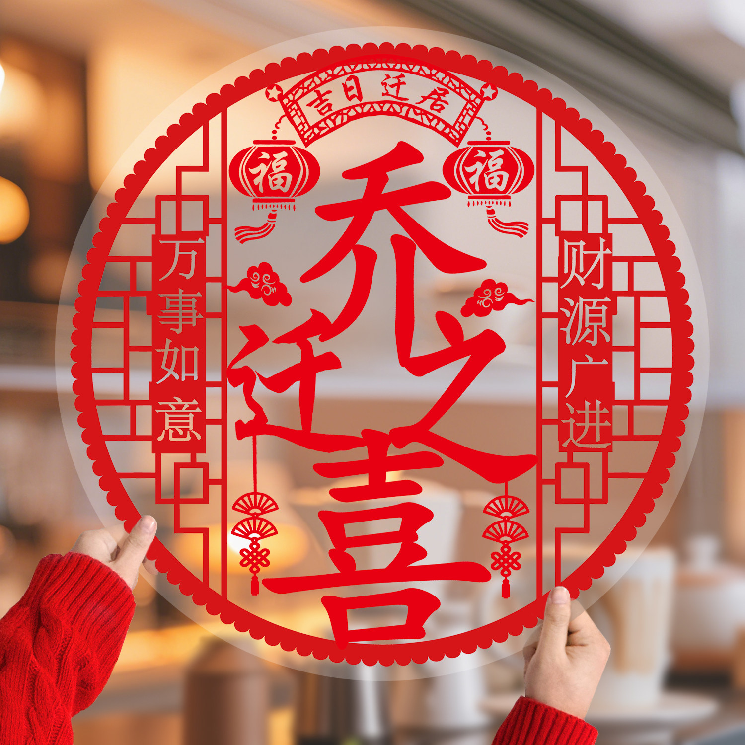 乔迁之喜窗花新年装饰玻璃贴剪纸年画福字门贴静电贴搬家仪式用品