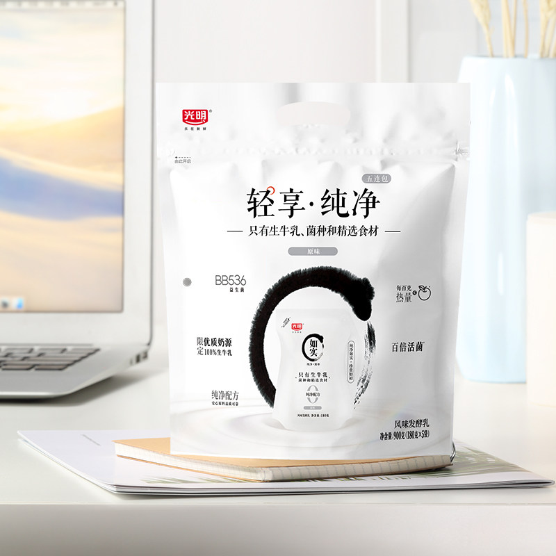 光明如实0添加蔗糖酸奶原味无蔗糖非脱脂健身风味酸牛奶袋装低温