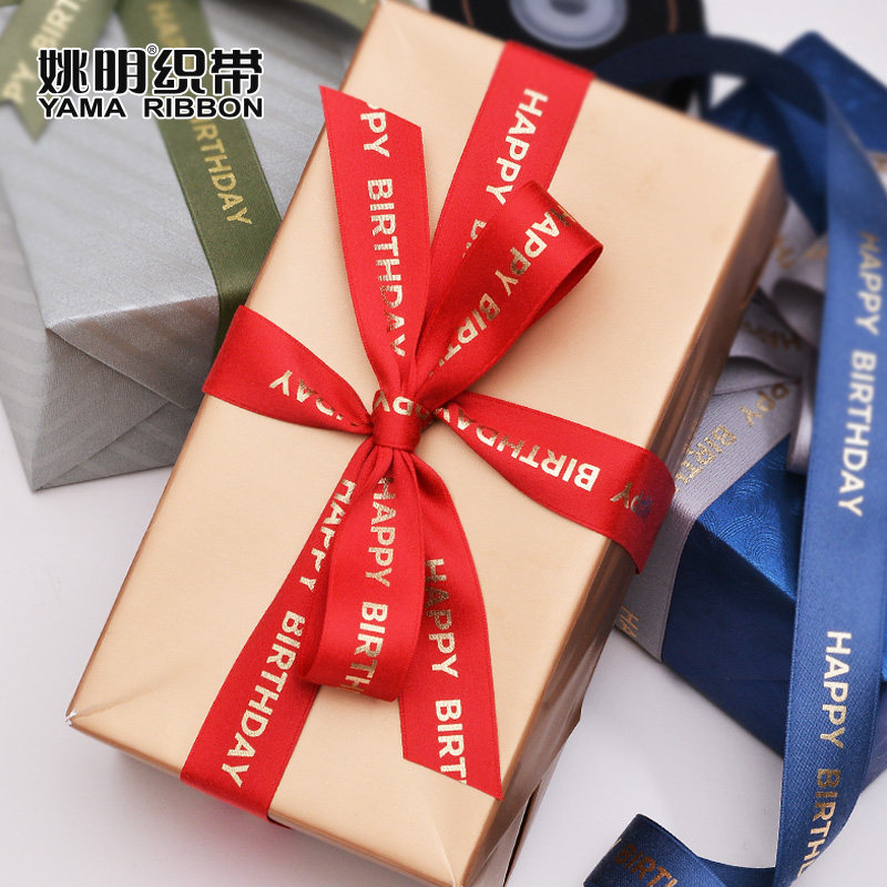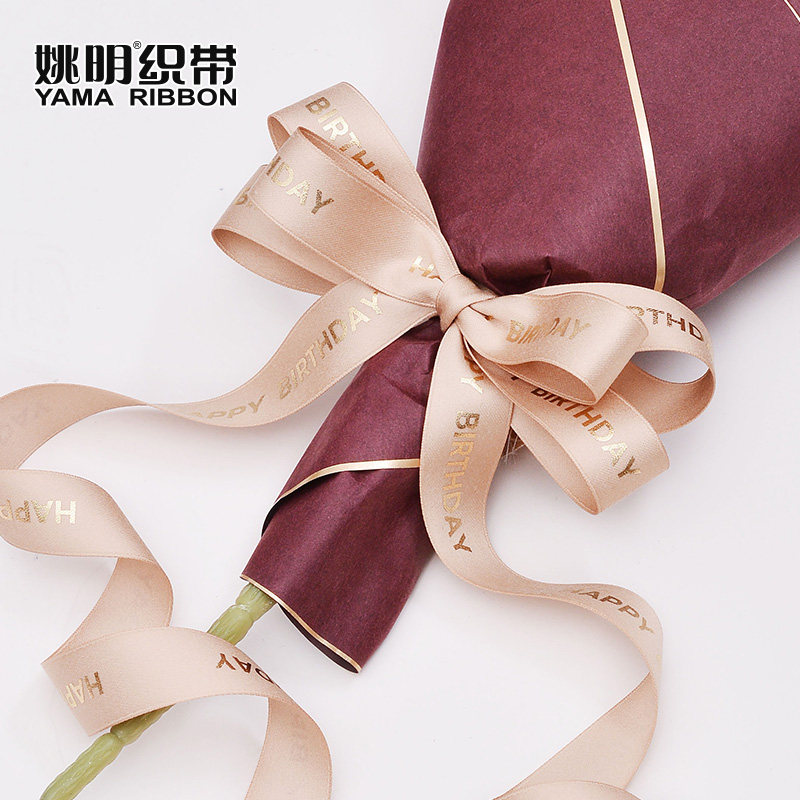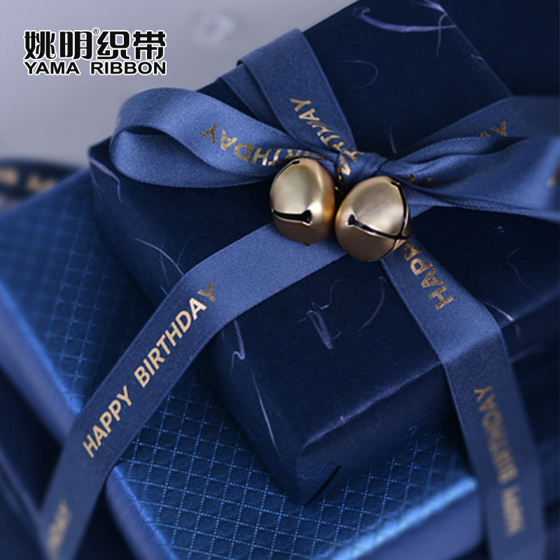 姚明织带双面涤棉带烫金字母印刷DIY材料丝带礼盒包装彩带缎带