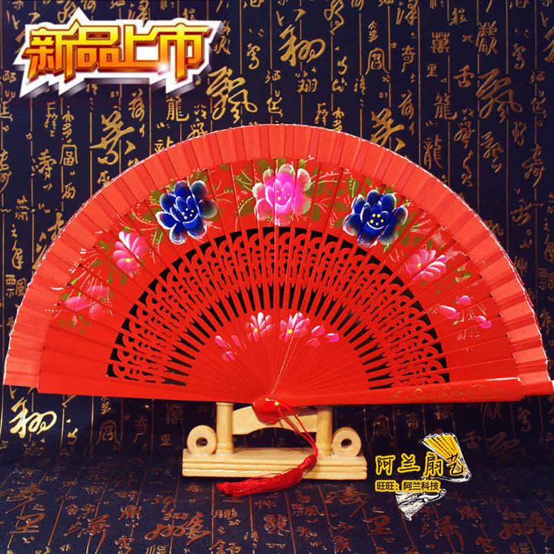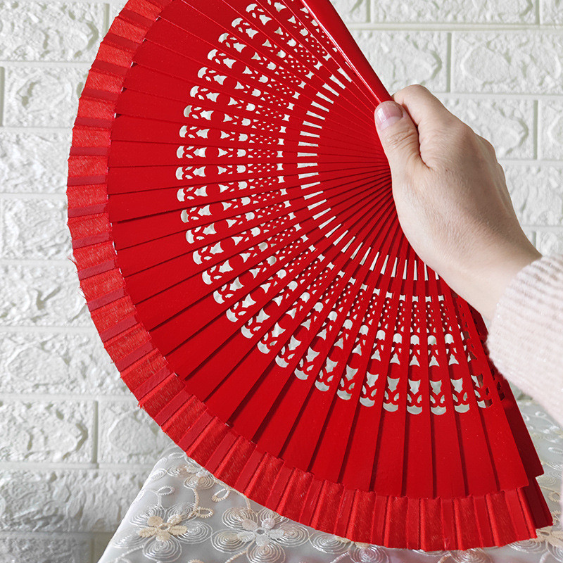 双面易开合折扇团体旗袍复古扇子走秀跳舞大红色模特舞蹈扇中驰兆