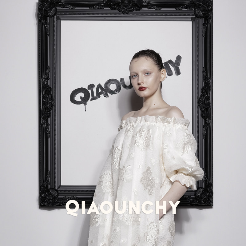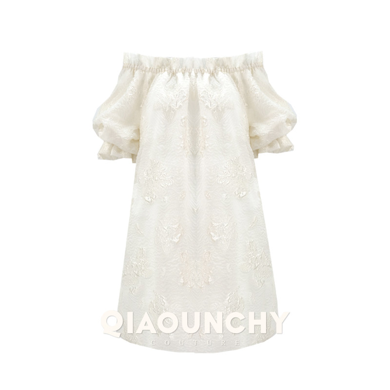 俏云曦一字领连衣裙真丝浮雕提花