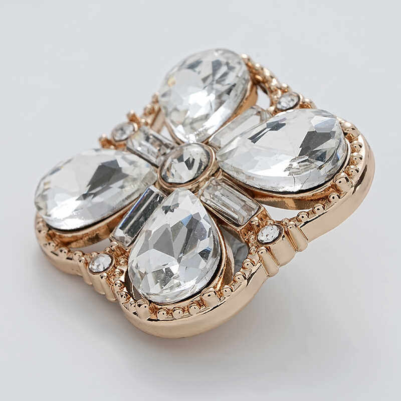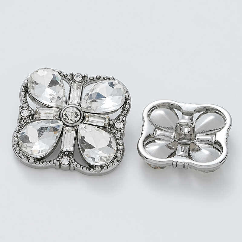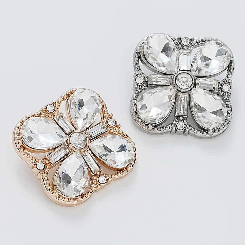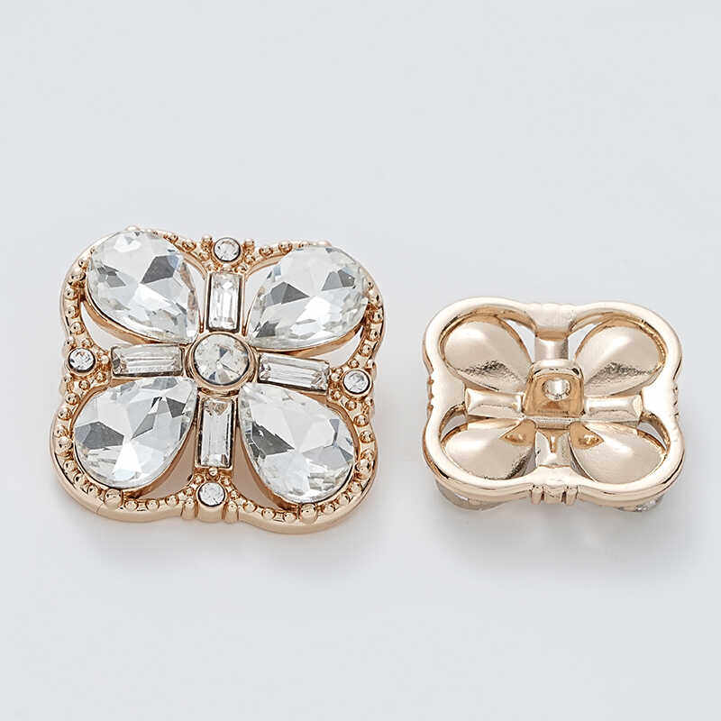 小香风四叶草镂空四边形水晶钻精致皓石重工皮草大衣礼服百搭纽扣