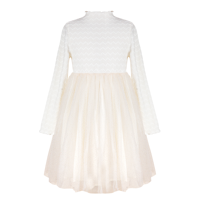 LittleNaive儿童春季新款针织连衣裙白色网纱裙女童甜美公主裙