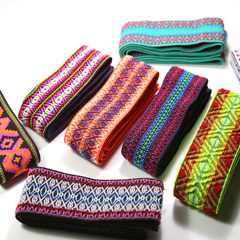 民族风提花松紧带宽橡筋彩色弹力宽皮筋裤腰带裤腰带裙子封腰