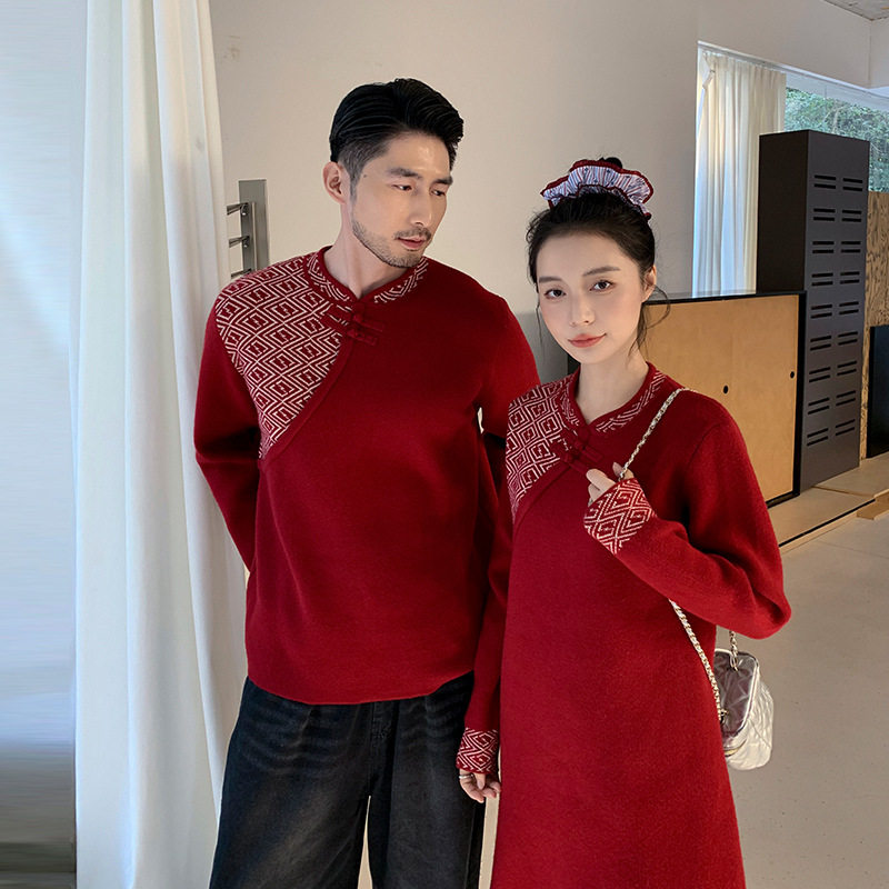 新中式秋冬加厚亲子毛衣连衣裙