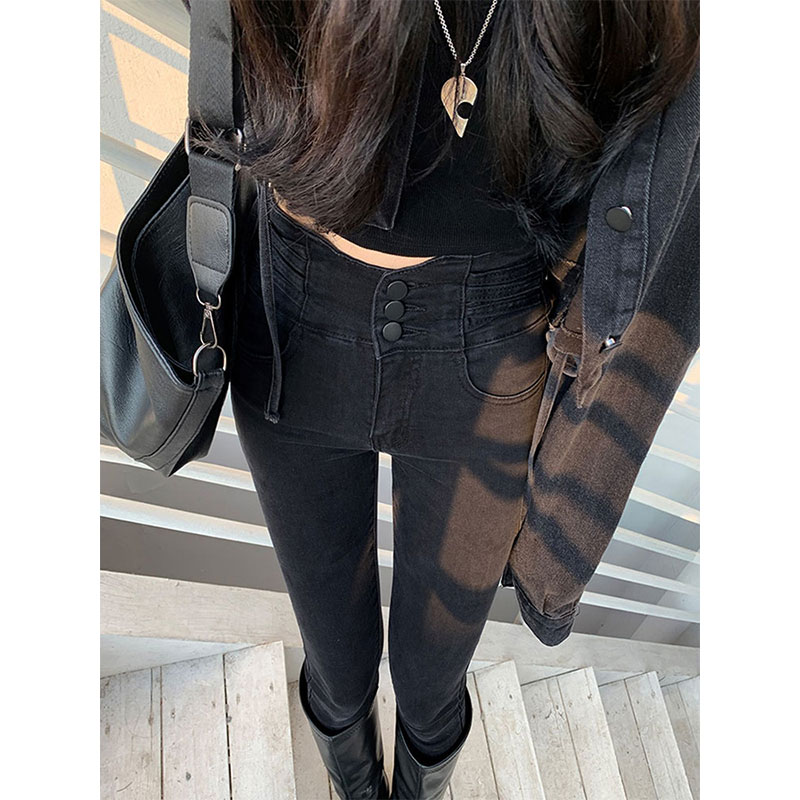 超高腰牛仔裤女春秋季2024年新款修身小脚弹力显瘦黑色紧身铅笔裤