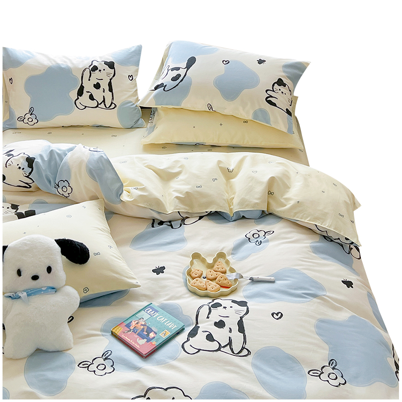 奶牛猫丨儿童卡通纯棉床上用品床单被套三四件套定制床笠床罩