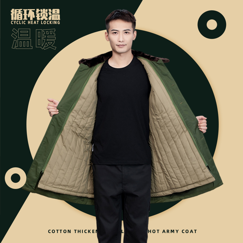 纯棉老款军绿大衣男女冬季加绒加厚棉服保安巡逻工作服东北大棉袄
