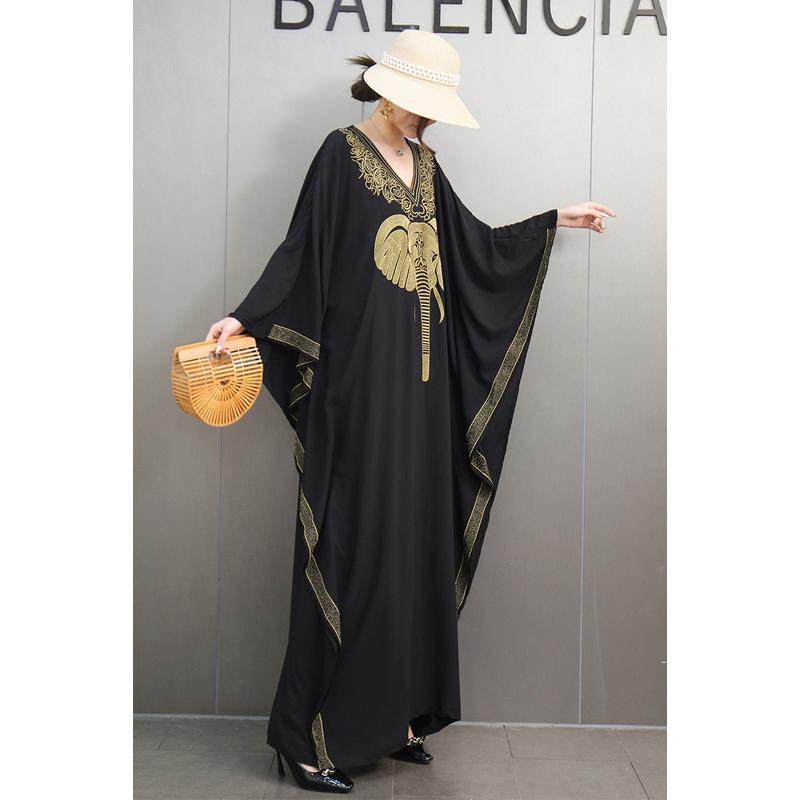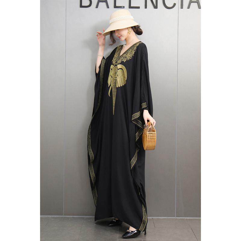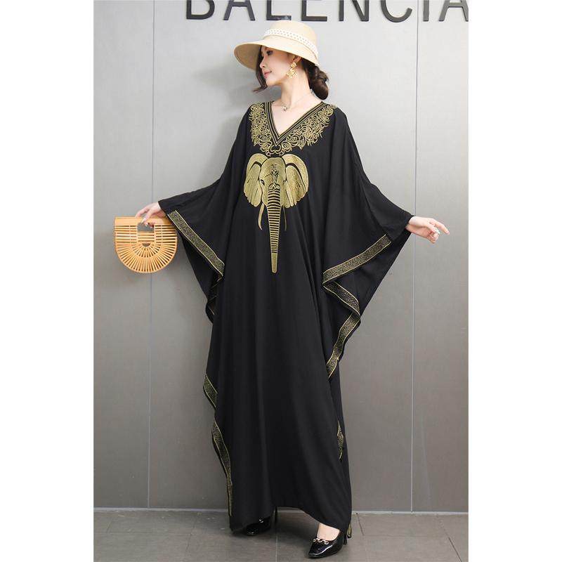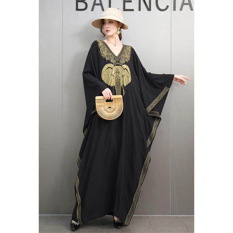 民族风复古长罩袍重工刺绣大象宽松大码连衣裙旅游度假长裙显瘦女