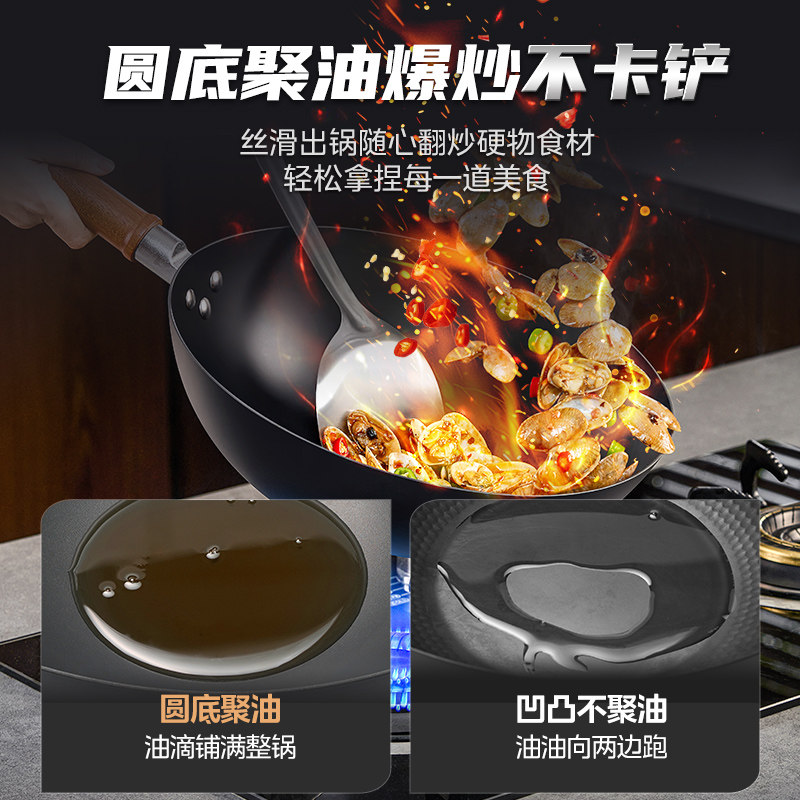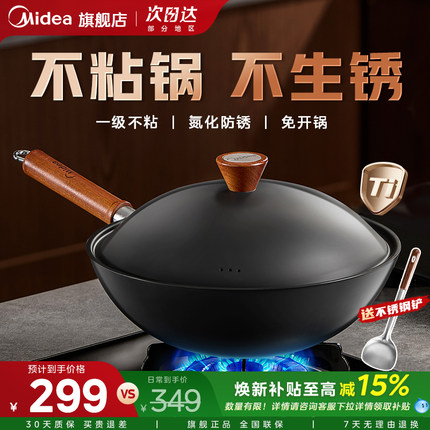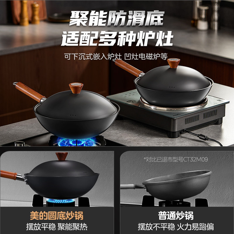 美的钛铁锅不粘锅无涂层家用钛锅圆底新款加厚炒锅炒菜锅燃气专用