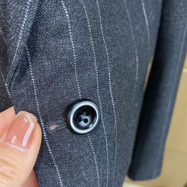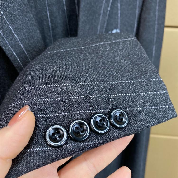 春秋商务休闲修身竖条纹两件套