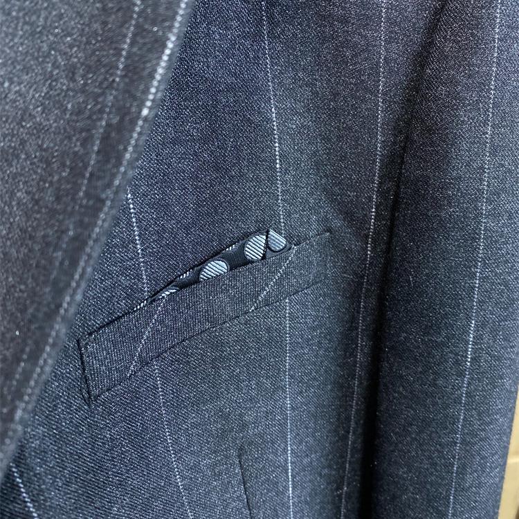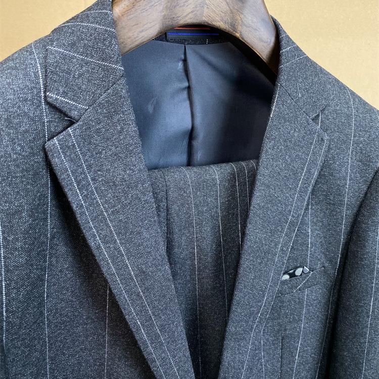 春秋时尚男士灰色商务西服套装西装外套西裤两件套修身竖条纹C01