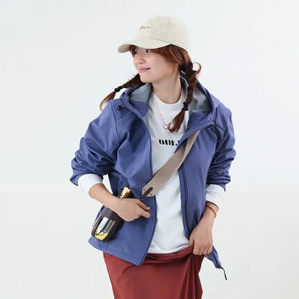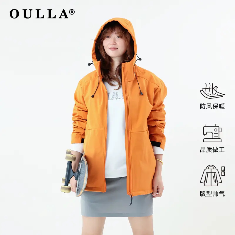 OULLA欧拉男女运动户外徒步防水外套连帽加绒保暖舒适软壳防风衣