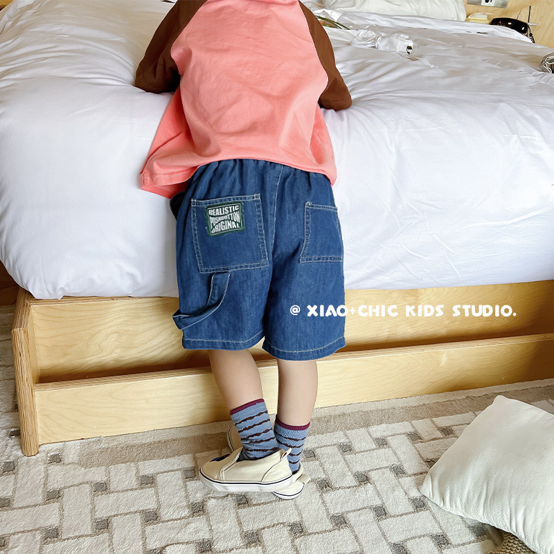 潮酷风~儿童夏装挂带牛仔裤男童短裤洋气宝宝五分裤休闲裤