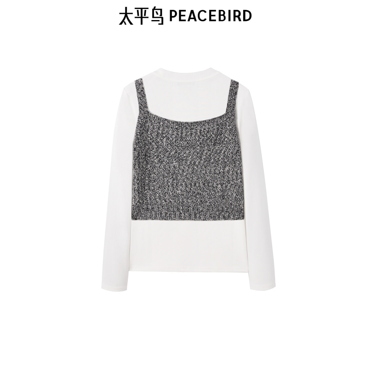 太平鸟女装秋冬两件套字母舒适圆领长袖上衣衬衫A1CDE410F