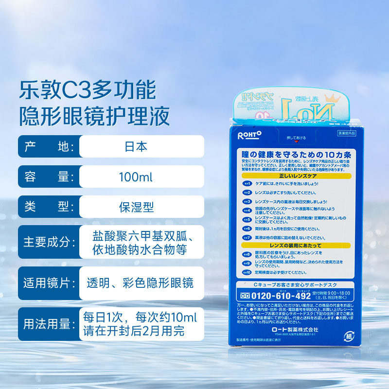 乐敦C3隐形眼镜护理液100ML日本长效保湿杀菌去蛋白美瞳适用温和