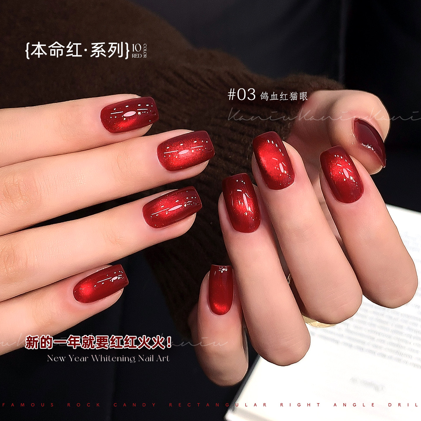 卡妞新年本命红猫眼2026年新款透色显白红宝石车厘子酒红色甲油胶