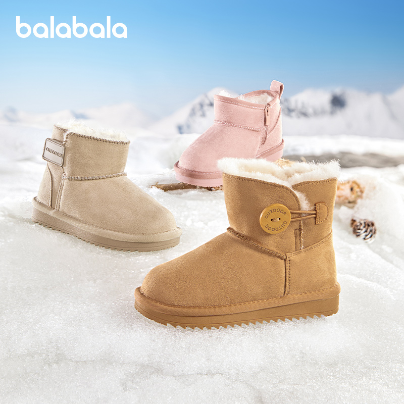 巴拉巴拉儿童雪地靴女童加绒短靴大童保暖靴子2025冬季新款童鞋厚