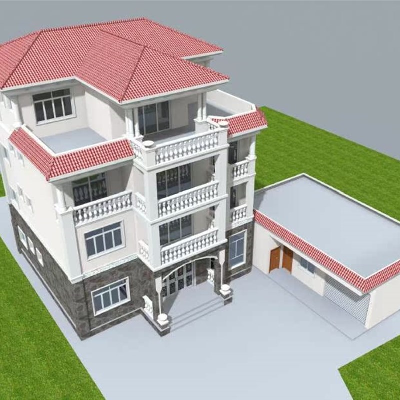 13.5x13.8 三层半经济美z观大气农村自建欧式别墅图纸外观图效果