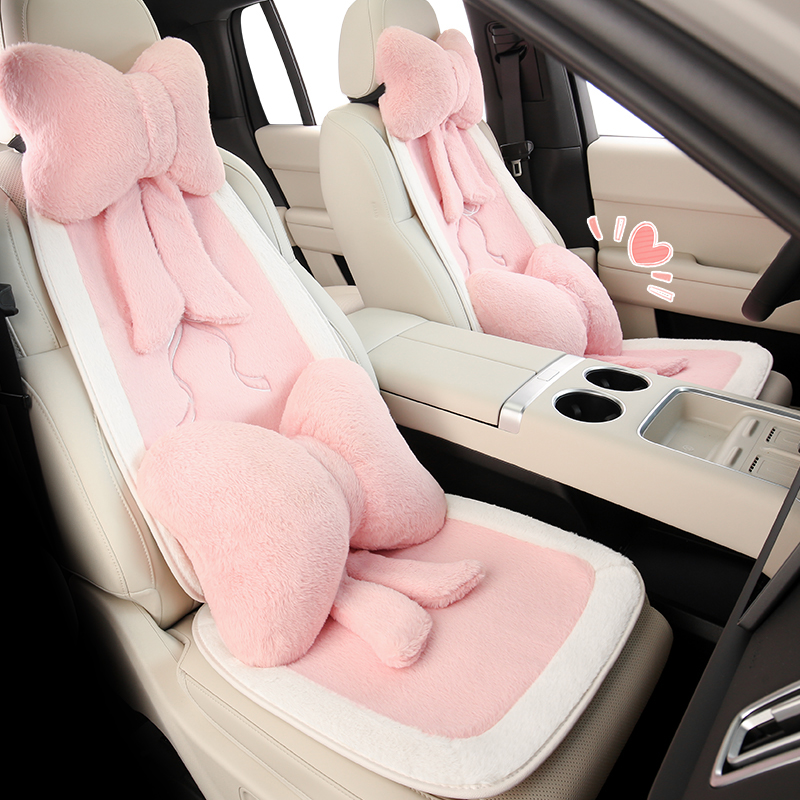 冬季汽车坐垫简约毛绒保暖加厚座垫网红女士粉色通用座套高级感