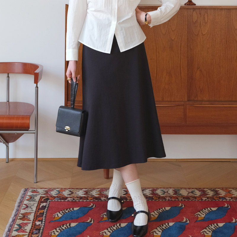 然若 垂感针织 白色半身裙女2025新款中长款包臀A字鱼尾裙梨形裙