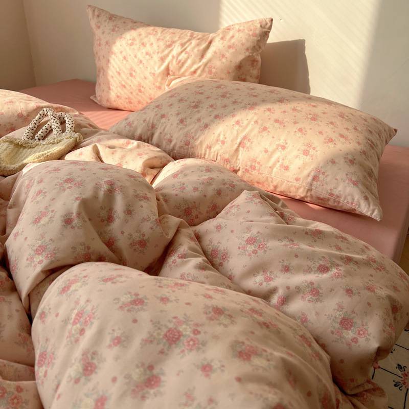 淡雅田园小碎花全棉床上四件套纯棉床笠被套1.5m1.8米宿舍三件套