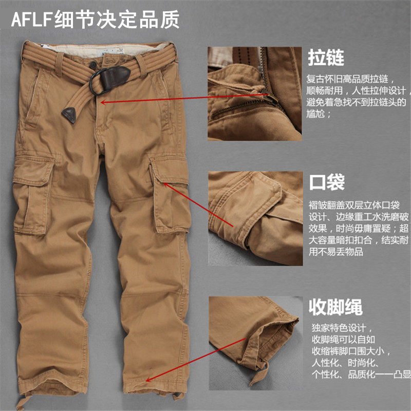AF&LF重磅美式工装裤男宽松潮牌纯棉大码休闲长裤直筒多口袋加厚