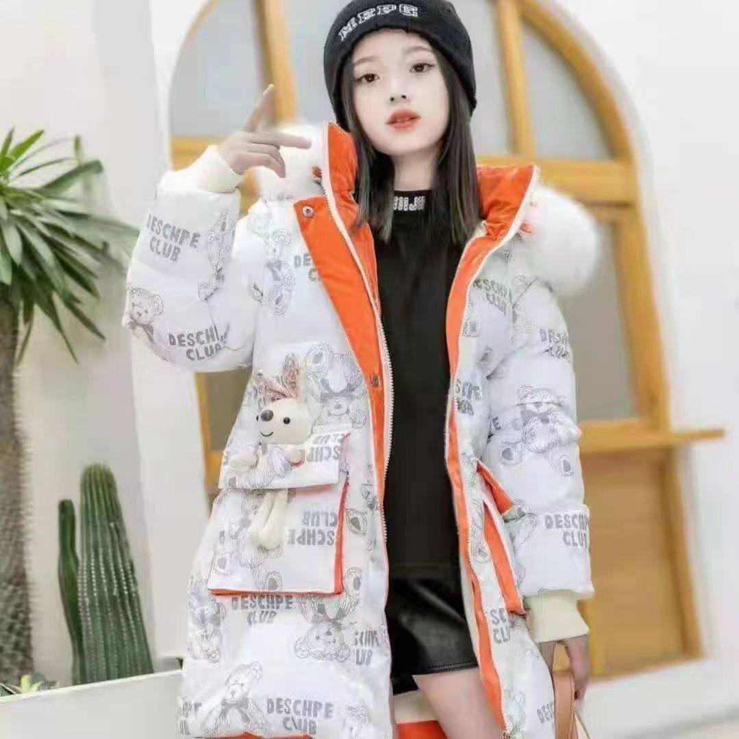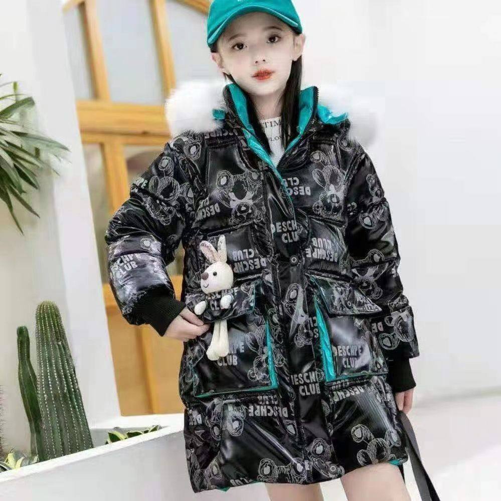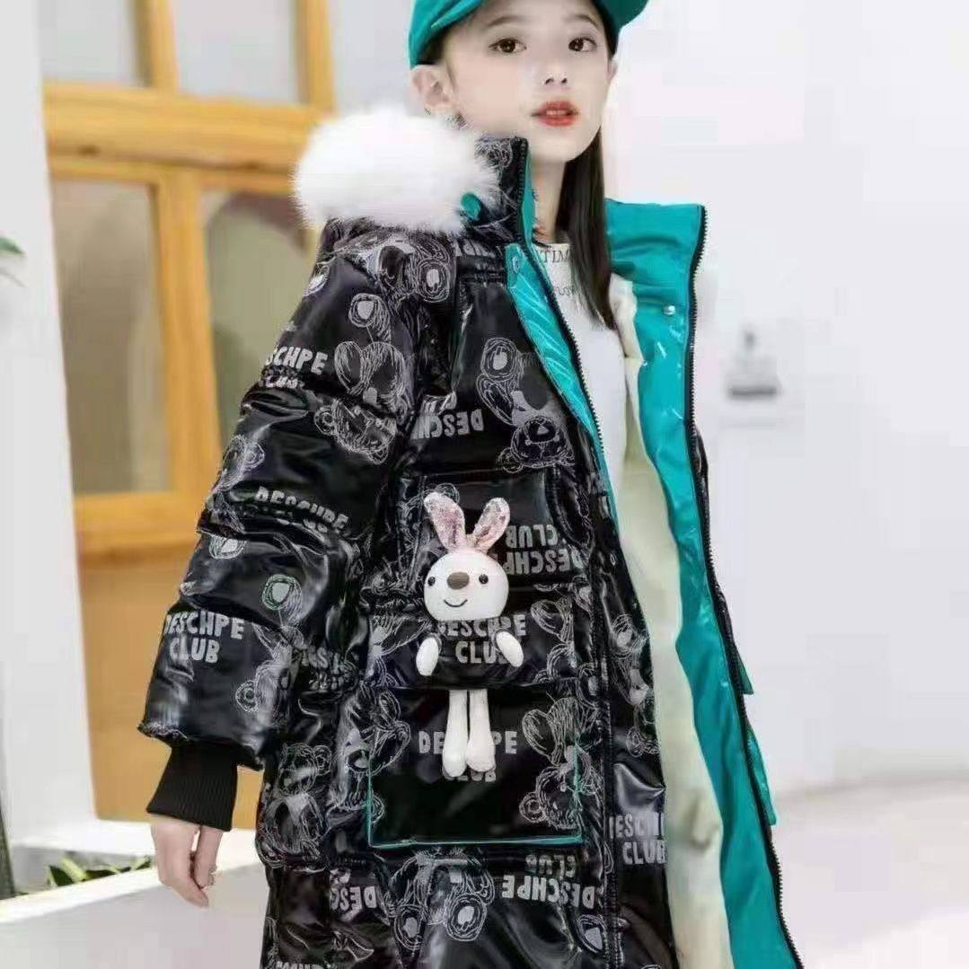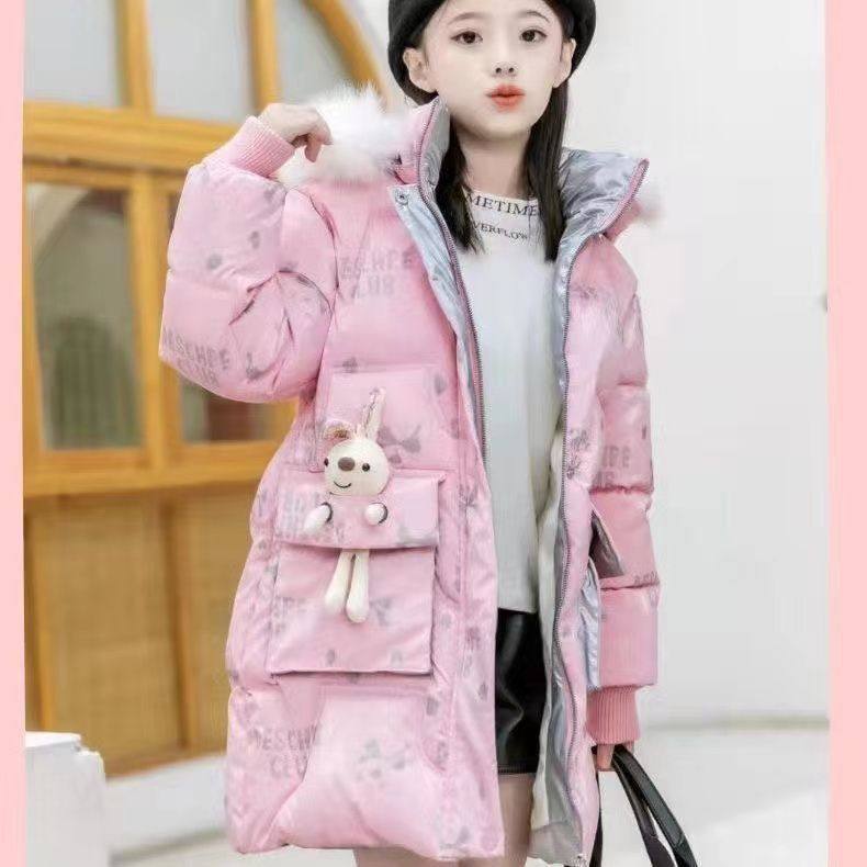 女童棉服中大童新款棉衣款加绒加厚洋气羽绒棉袄女孩亮面免洗