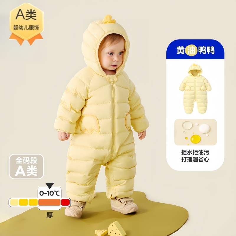 品牌童装婴儿羽绒服连体衣冬季2025新款三防保暖洋气新生外出抱衣