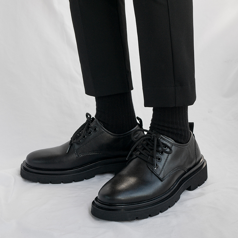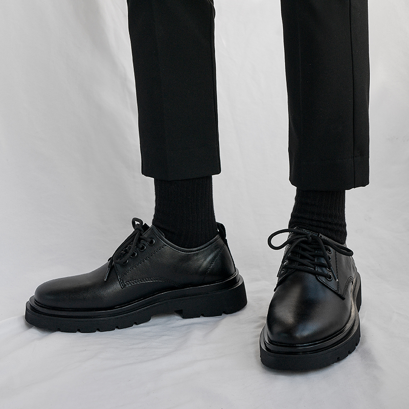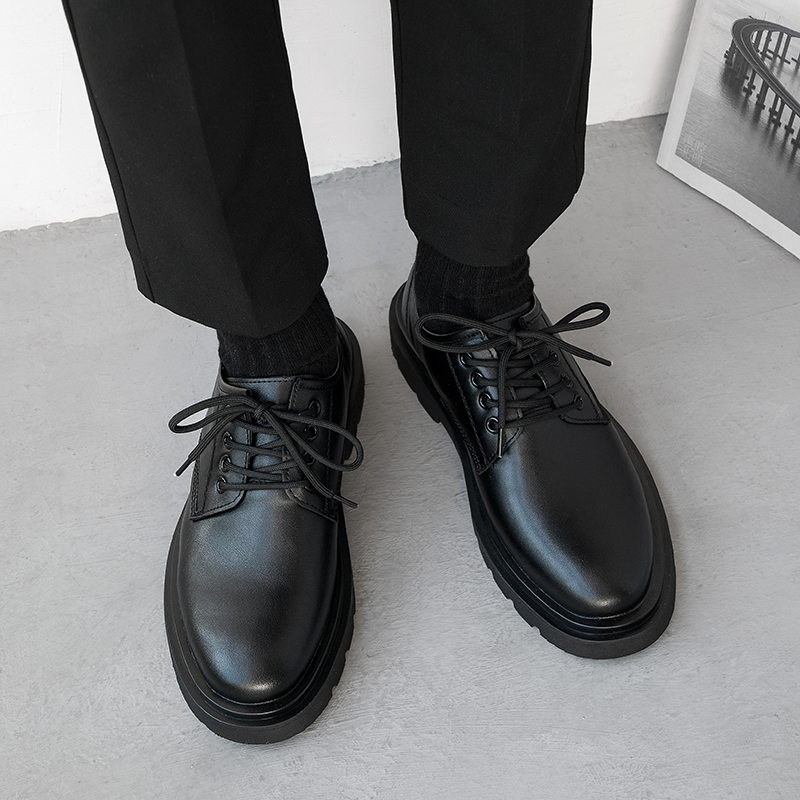 男士小皮鞋春季英伦风厚底增高商务正装圆头潮流马丁靴男低帮