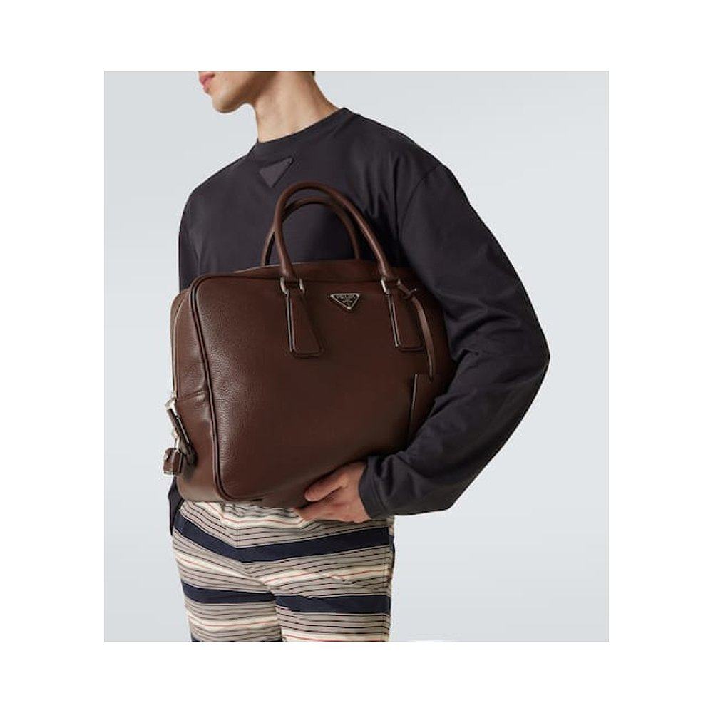 1h可退 香港直邮Prada 普拉达 男士 皮革公文包 brown棕色 舒适时