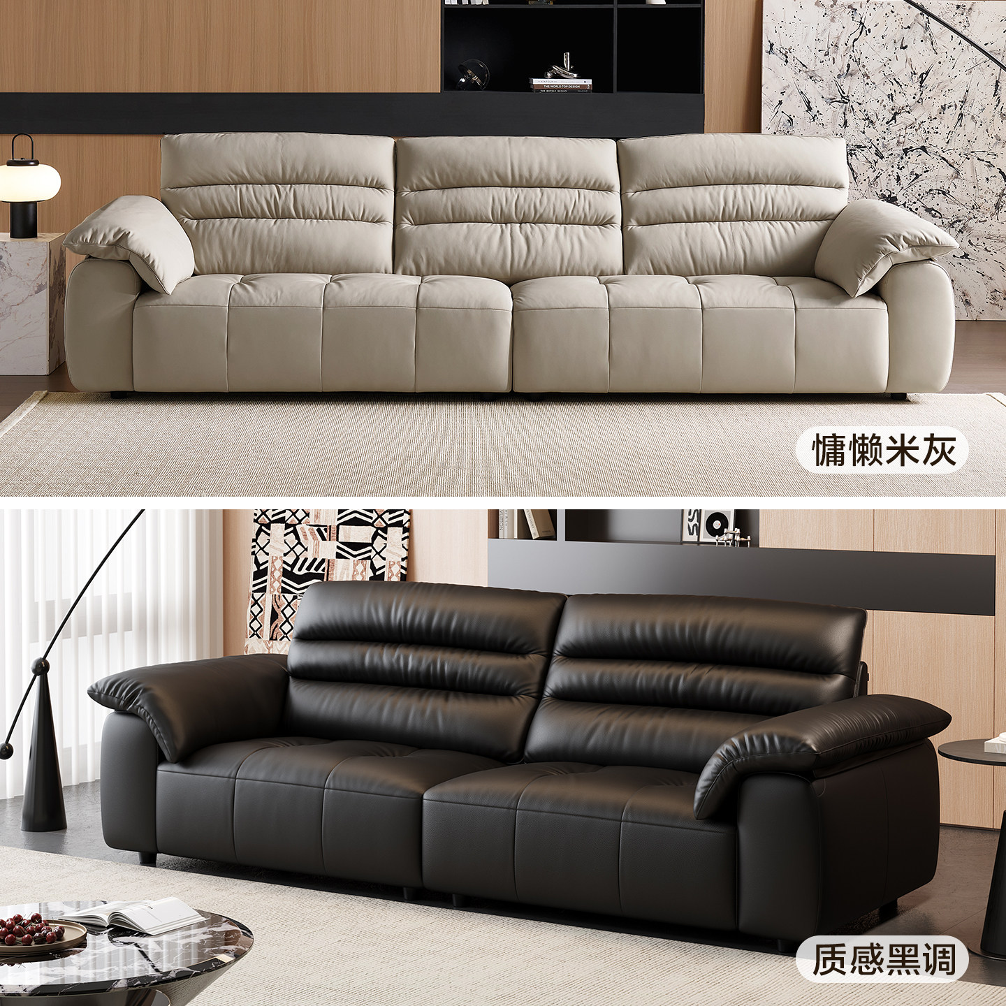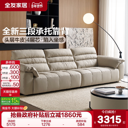 全友家居现代简约头层牛皮沙发2025新款高级感小户型客厅直排沙发