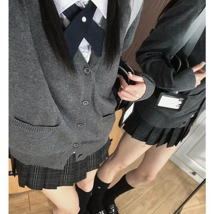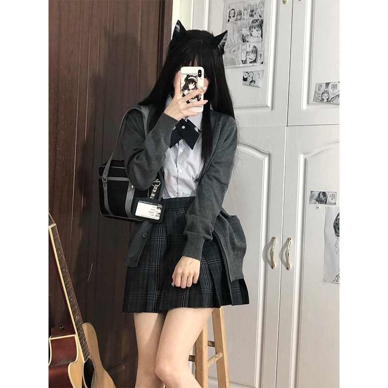 车厘子jk制服原创日系学院风毛衣针织衫校供感宽松纯色开衫外套女