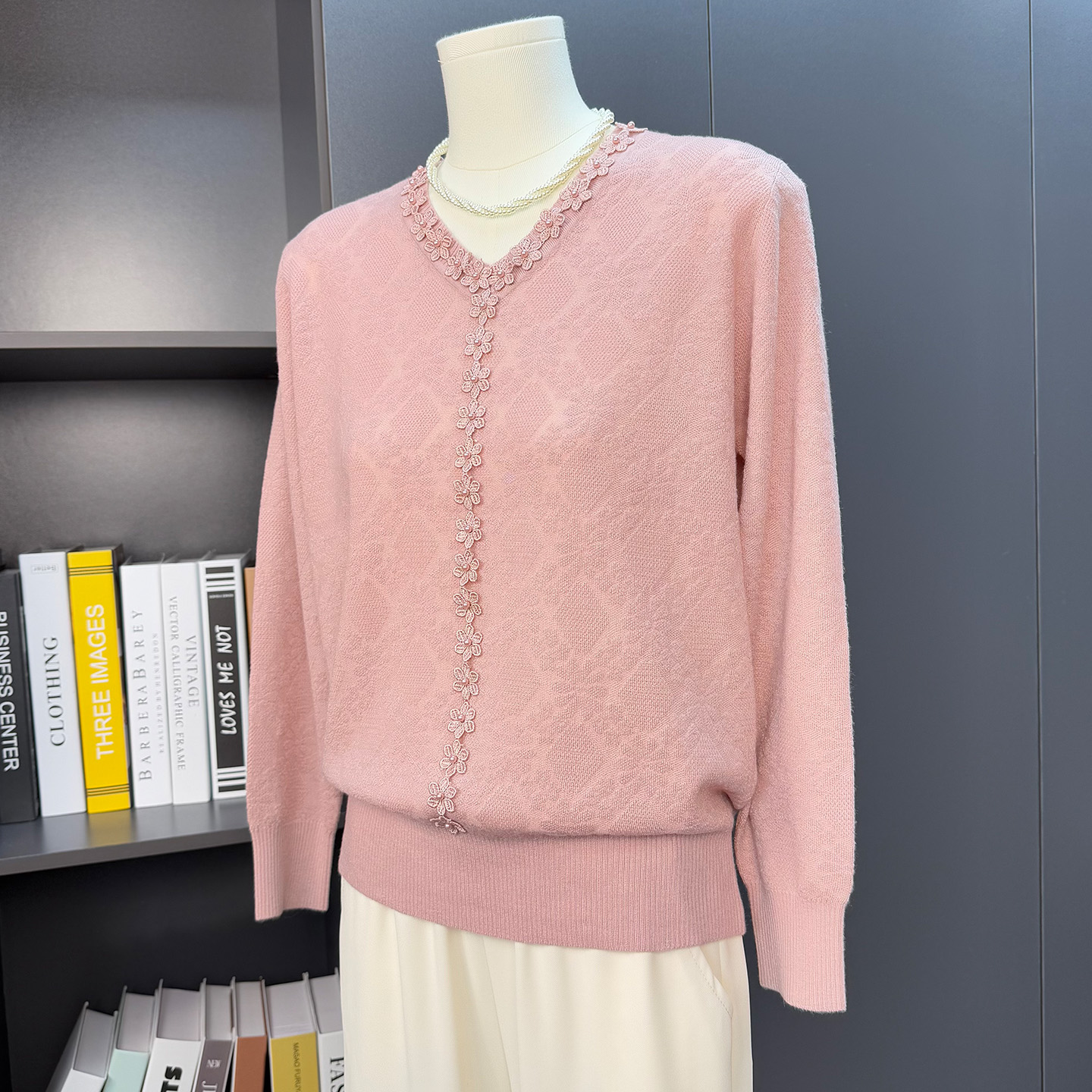 妈妈装秋季针织衫女长袖羊毛衫上衣打底衫中老年衣服宽松薄款小衫
