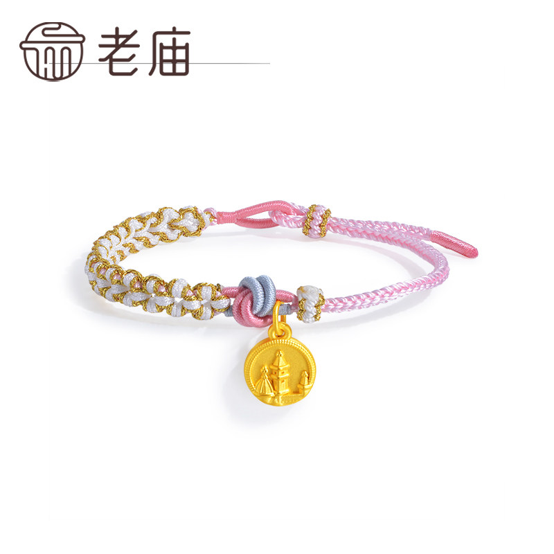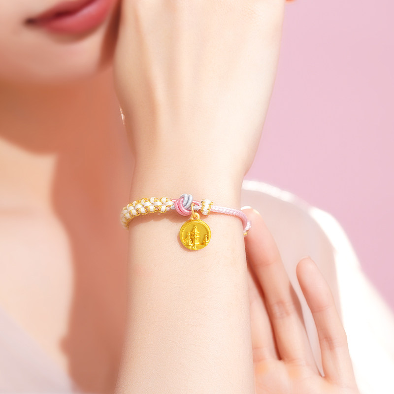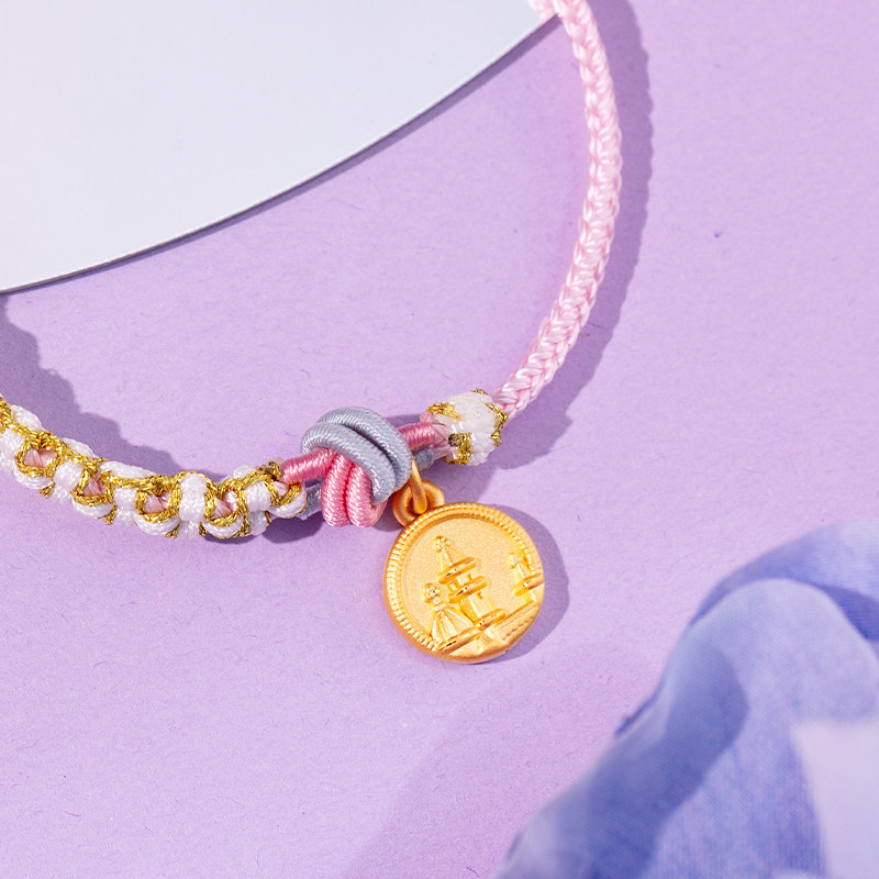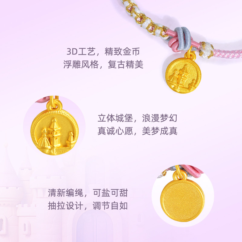 老庙黄金足金魔法城堡编织手绳手链3D浮雕风格金币复古童趣送礼物