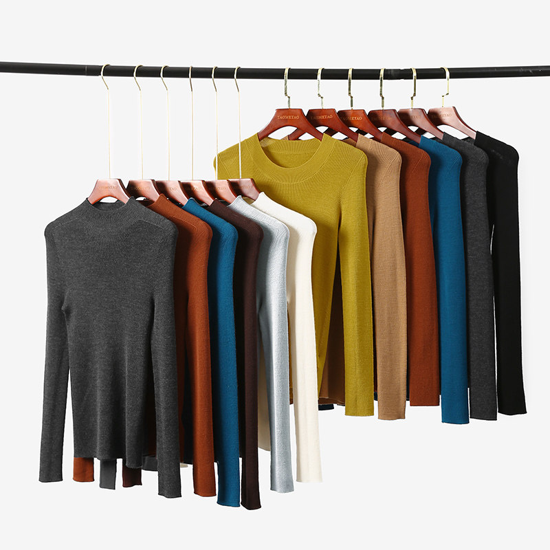 淘么淘 可机洗+无缝一体超细美LI诺羊毛半高领/鹅蛋领修身针织衫