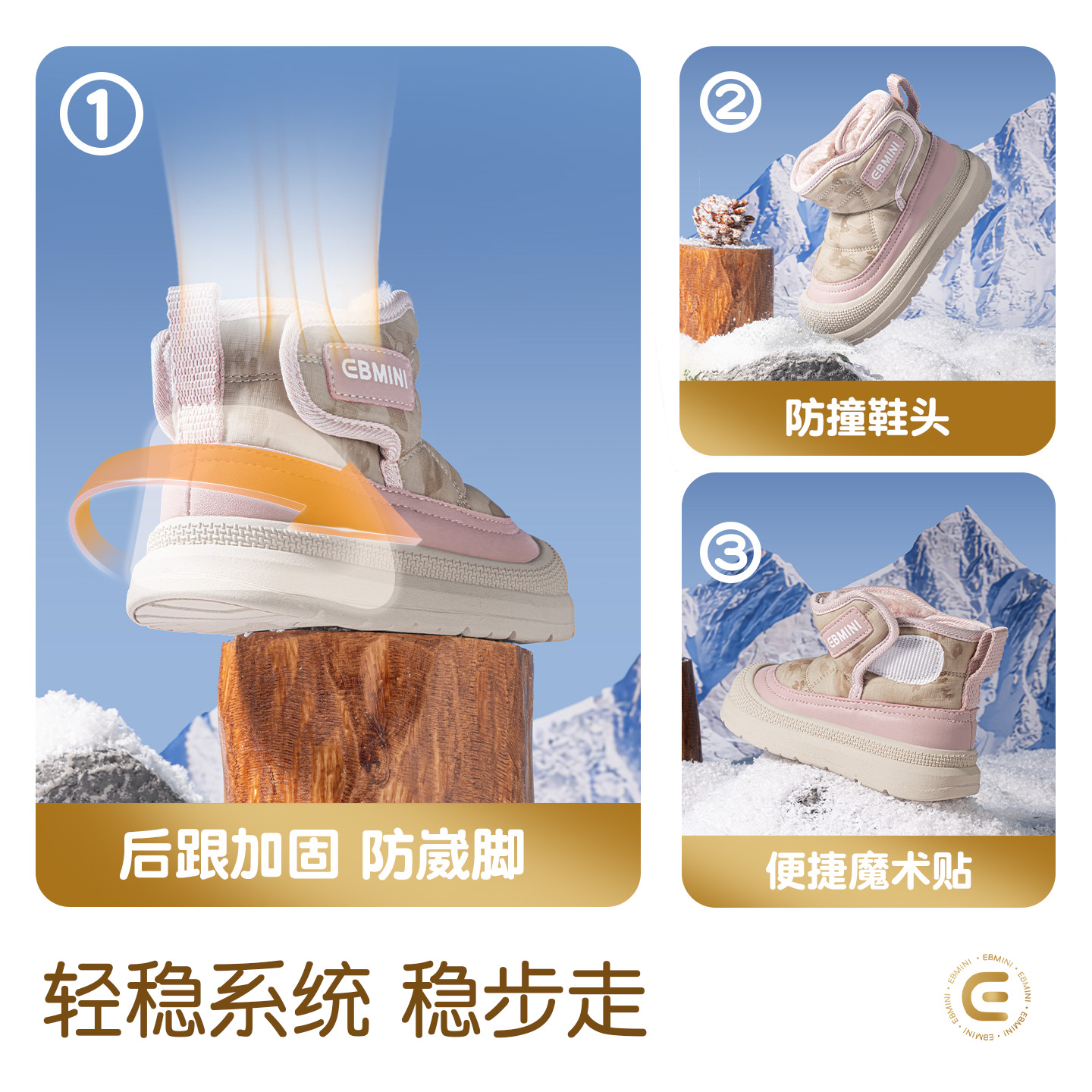 英贝米尼轻稳雪地靴加厚儿童靴子2025冬季女童防滑加绒男宝宝鞋子