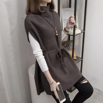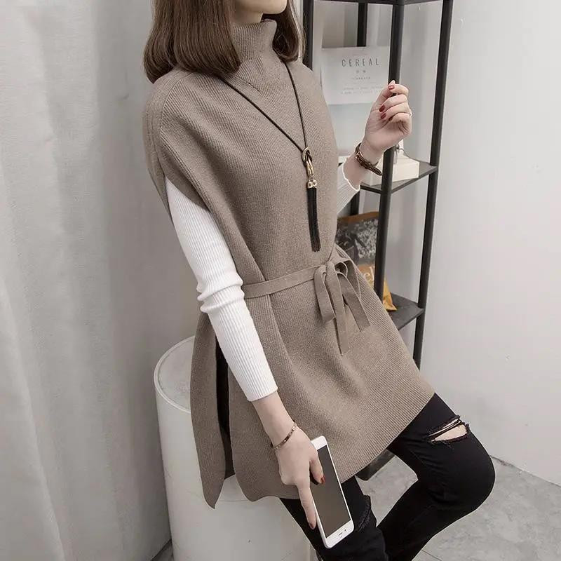 半高领中长款毛衣坎肩女士春秋洋气针织衫裙宽松马甲上衣两件套装