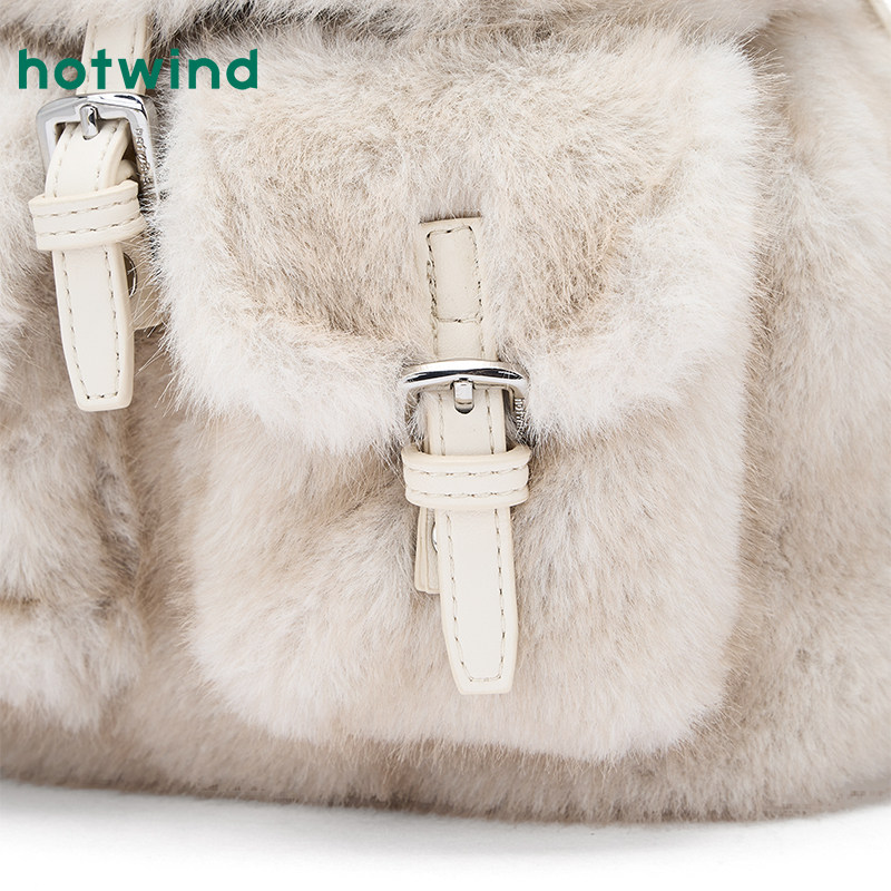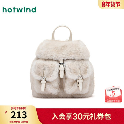 热风女士毛绒双肩包2025年冬季新款大容量小香风手提双肩背包