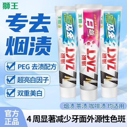 狮王牙膏去烟渍茶渍牙渍美白清新口气改善牙黄家庭装男女渍脱含氟
