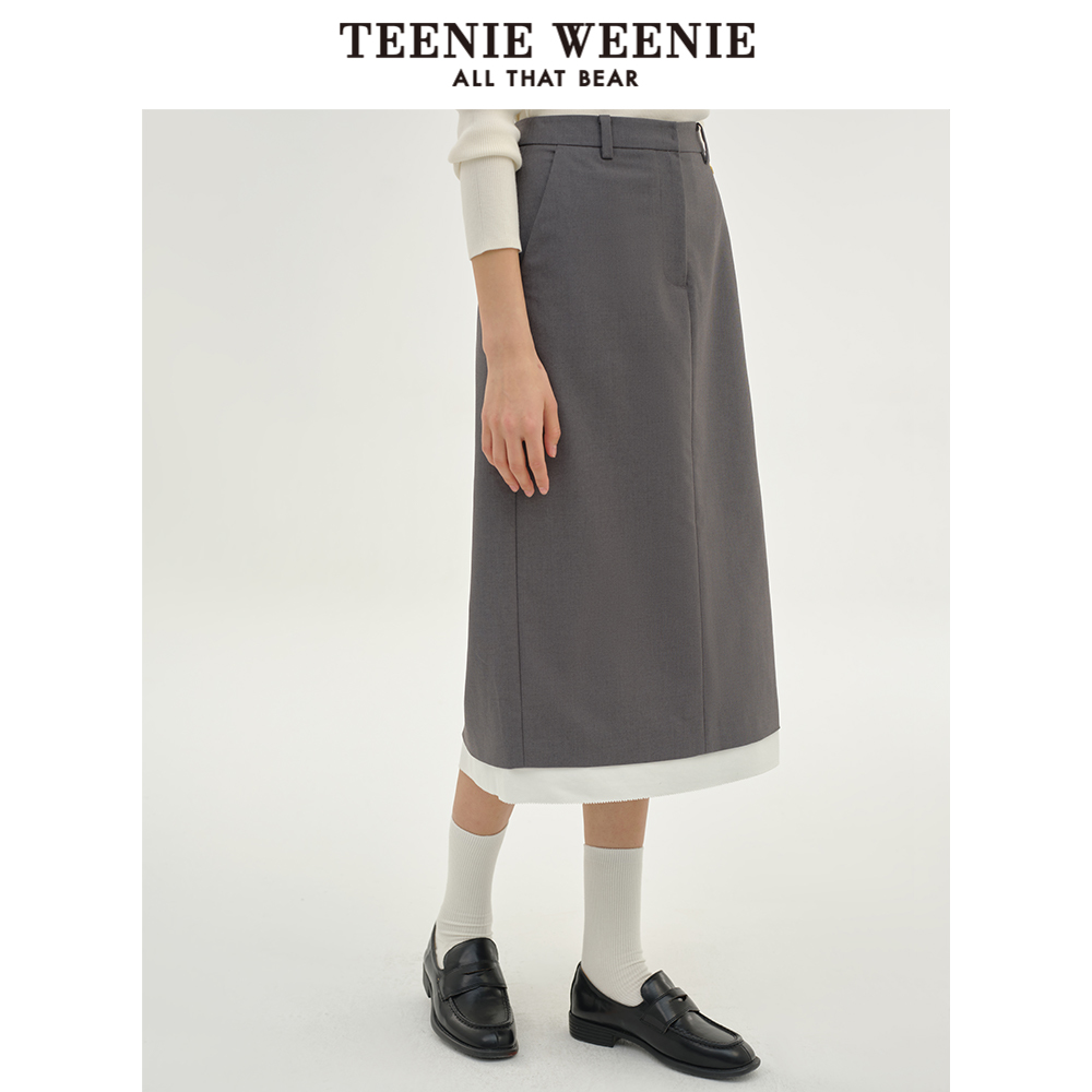 TeenieWeenie小熊女装夏季气质简约开叉设计直筒半身基础款西装裙