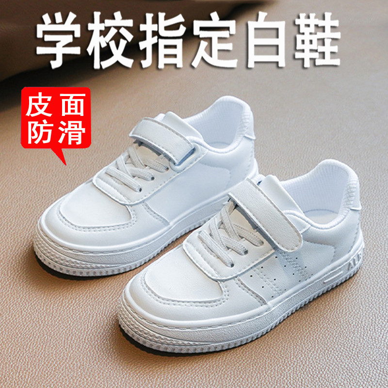 儿童板鞋春季白色皮面小学生